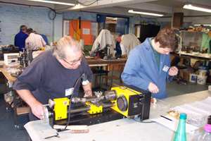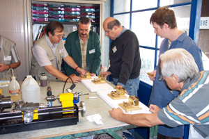 Durant deux jours ils ont pratiqué l’alternance, pas forcément l’abstinence, passant de la théorie à la pratique et inversement. Si Robert ROCHART les initiait aux secrets de la vapeur vive, Joël HENSSENS, Philippe CHIELLENS et Philippe DAMBRY les aidaient pour l’utilisation des machines outils. Une bonne occasion d’échanger entre modélistes les mille et une astuces que chacun possède, surtout au moment des pauses « café » |
