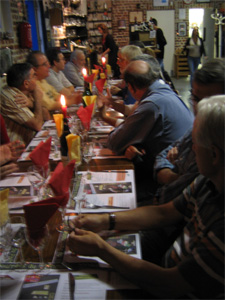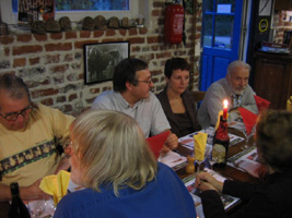 Le samedi en fin d’après midi le Président de la FFMF, Christian TOURSEL, était venu spécialement à Lille pour saluer les stagiaires, sans doute aussi s’assurer que ce premier stage répondait à son attente. Il en profita pour se joindre au groupe, grossi en l’occurrence de plusieurs membres de VAPEUR 45, à l’occasion d’un diner convivial à frais partagés. Les nouveaux adeptes de la vapeur vive étant venus du Jura, de Normandie, de la Bourgogne, de l’Ile de France et des Vosges, les organisateurs avaient tenu à leur faire découvrir, la cuisine du Nord