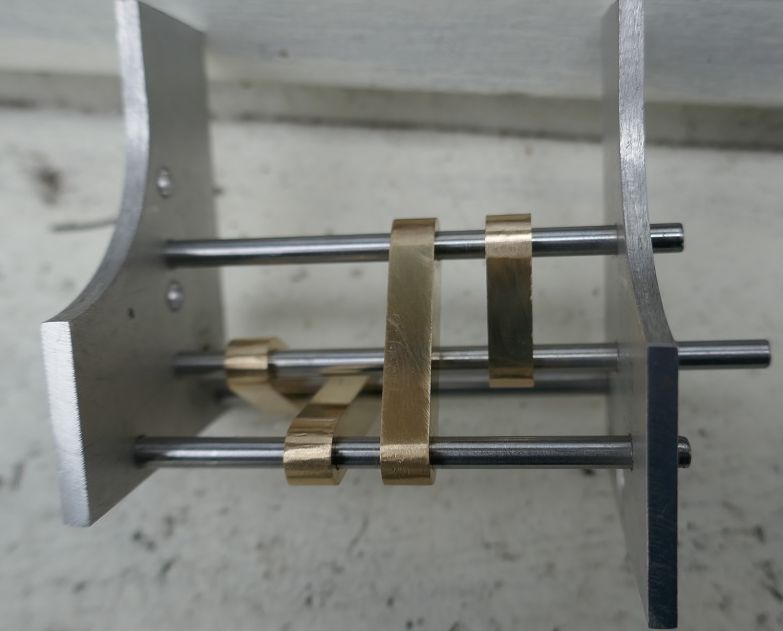 J'ai utilisé du laiton de 3 mm pour les montants, et de l'acier de 6 mm de diamètre pour les entretoises.
