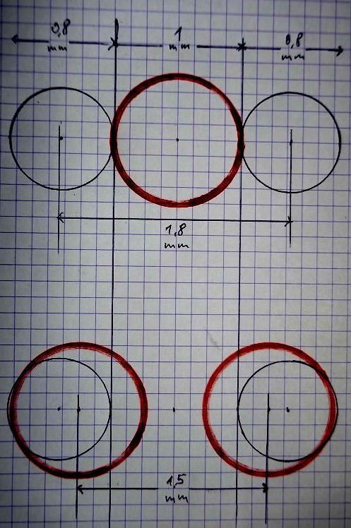 Nous avons choisi de réaliser sur l'axe d'oscillation des trous de 0,8 mm, avec un écart de 1,8 mm, et des trous de 1 mm sur la culasse du cylindre.
