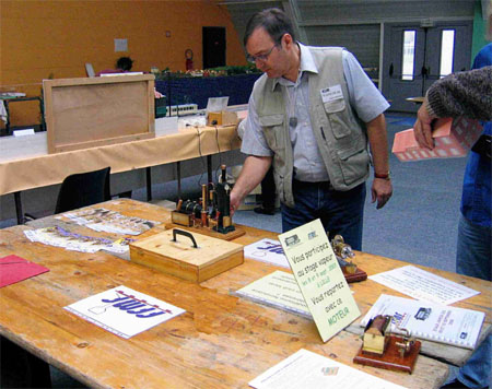 De nombreux documents présentaient les activités fédérales et notamment les stages d’initiation et de perfectionnement organisés par les clubs sous l’égide de la fédération : soudure, construction, peinture, décoration. De plus sur un écran de belle taille se succédaient les dernières images de WEMFAL 2006 (Lille 14 et 15 octobre) et du stage vapeur de septembre. Tout à coté une place particulière était réservée à la promotion du prochain stage vapeur 2007. Le stagiaire potentiel pouvait voir, et toucher, le bloc moteur qu’il apporterait à l’issue des deux journées d’initiation ainsi que la brochure explicative. De nombreuses questions furent posées par les visiteurs dont beaucoup découvraient les possibilités offertes par la vapeur dans le modélisme ferroviaire |