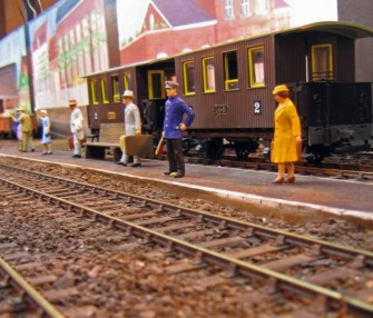 Les fonds de décors, dus au talent de Madame CHIELENS, évoquent les différents batiments de cette installation dont la gare proprement dite est toujours en service sur la ligne LILLE/TOURNAI.