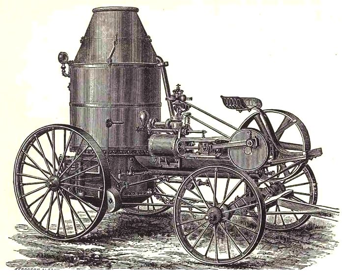 Le besoin d’une source motrice mobile a toujours été présent dans la société. Les progrès technologiques ont permis dès la fin du XIX ème siècle de concevoir des ensembles vapeur suffisamment robustes et peu encombrants pour pouvoir être déplacés sur un chariot surbaissé mû par traction animale voire par deux hommes. Ils sont connus sous le nom de « dairy steam engine », littéralement « moteur ) vapeur de laiterie » car c’est dans cette branche qu’ils ont le mieux prospéré.