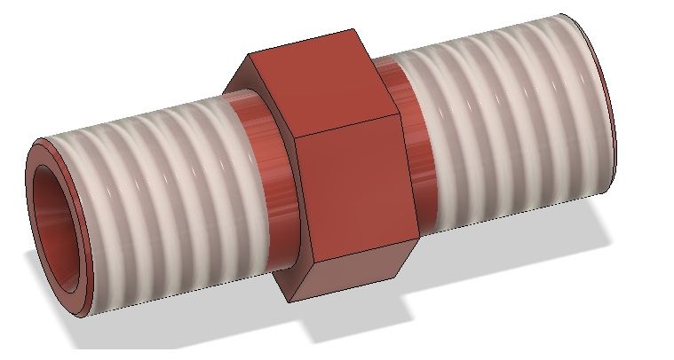 Ci-dessus, un exemple d’un raccord union pour un tube de 4 et un de 3.