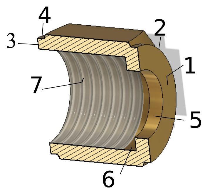 L'ensemble des pièces sera réalisé en laiton. L’utilisation de visserie inox est acceptable et donne une esthétique agréable.