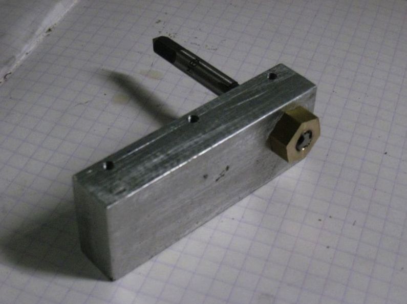 La réalisation ne présente pas de difficulté particulière. Pour le perçage dans le bâti, on utilise l'angle naturel du foret, une autre solution consiste à fabriquer un D_bit à 120° avec un rond en acier d'outillage trempé à vue. Perçage avec un foret standard à 118° puis rectification avec le D_bit.