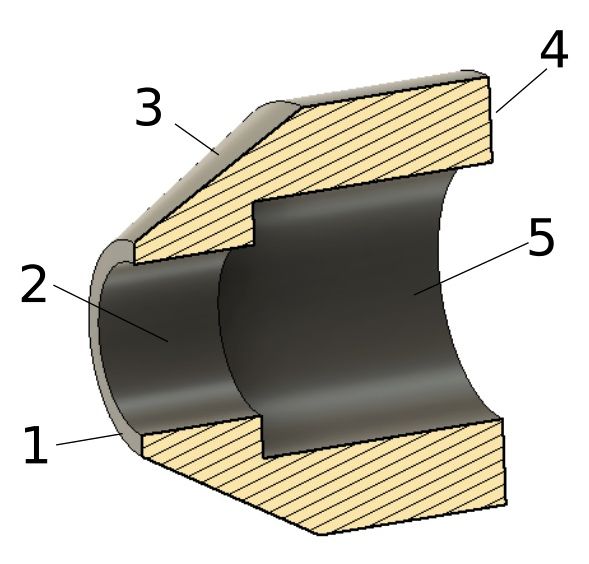 Lors du perçage de la virole de la chaudière, il est recommandé d’y insérer un mandrin en bois tourné, ajusté ferme mais glissant. Cette pièce en bois annulera le risque de déformation de la pièce et donnera un débouché propre avec un minimum de bavures.