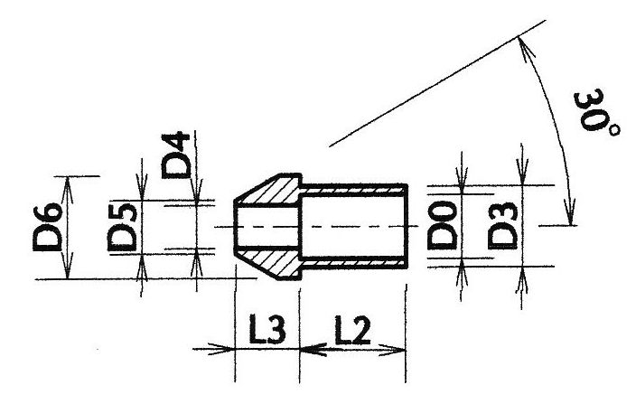 Le décolletage de la bride ne présente pas de difficultés particulières. On partira d'un rond laiton d'un diamètre légèrement supérieur à D3. On commence par la fabrication des ébauches.