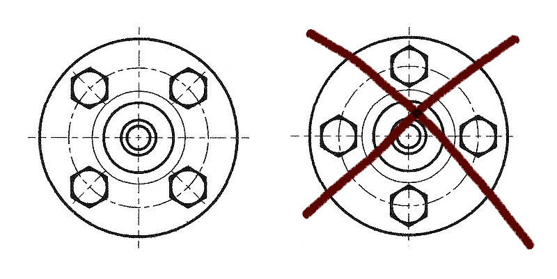 Pour le brasage sur la tuyauterie, apparier les deux brides sans joint avec deux boulons, de manière à obtenir le parallélisme des deux brides. Placer les tubes de cuivre ou laiton en appui dans les trous borgnes. Les brides seront obligatoirement montées au "carré", c'est-à-dire, les trous en dehors de l'axe vertical de la canalisation (comme dans l'industrie).