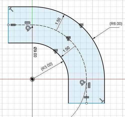 Le site officiel du syndicat(1) des tubes cuivre donne comme rayon minimal de courbure de la fibre moyenne (axe du tube communément nommé fibre neutre) 3 à 4 fois le diamètre extérieur pour les tubes en cuivre mi-dur cintrable à froid. Pour un tube Dext = 3 mm on sera entre 9 et 12 mm avec diamètre intérieur de cintre de 6 mm.