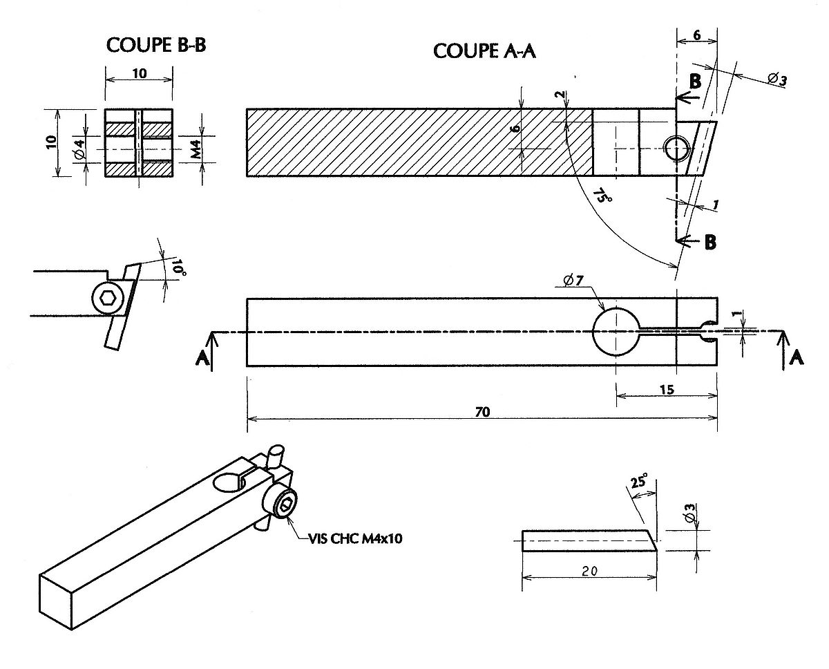 Cet outil est directement taillé à la meule dans un barreau HSS. Il faut s’exercer quelque peu avant d’arriver à obtenir un profil acceptable.