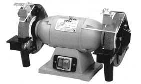 Le touret à meulerCette petite machine entraîne deux pierres de meules qui vont servir à réaffûter les outils usés. Les meules sont faites d'un amalgame de poudre abrasive plus ou moins fines noyées dans une résine. |