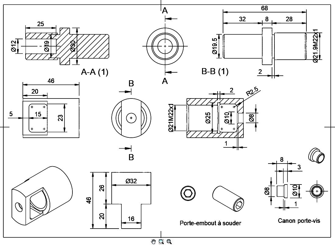 Le tenon de la partie mâle du mandrin dépendra de votre système de maintien de l’ébauche sur le tour. Dans l’exemple proposé il est prévu pour une prise sur pince ER32.